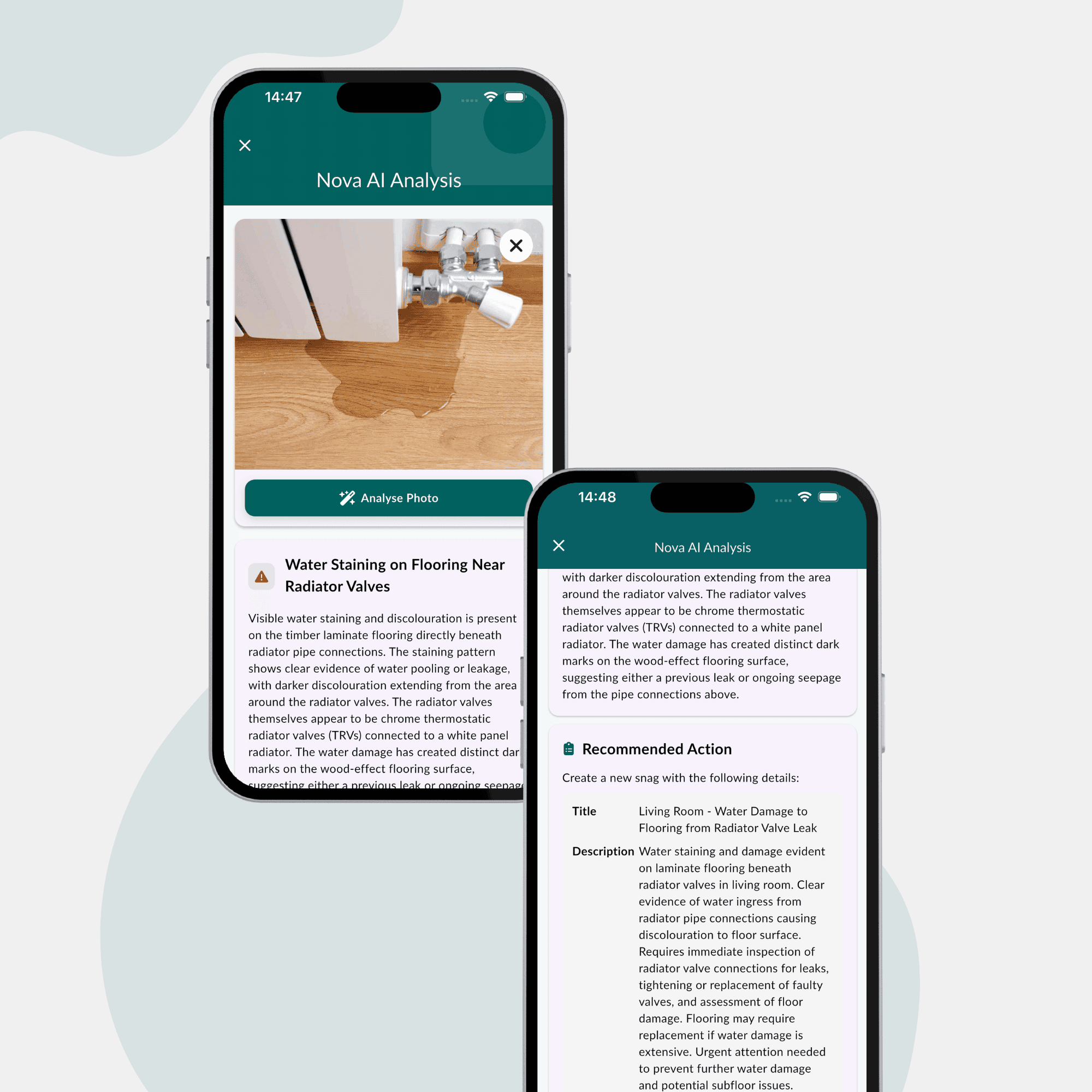 Nova can give gudiance, be a conversational assistant for anything snag-related, and even analyse photos to detect issues and create a snag with a severity rating.